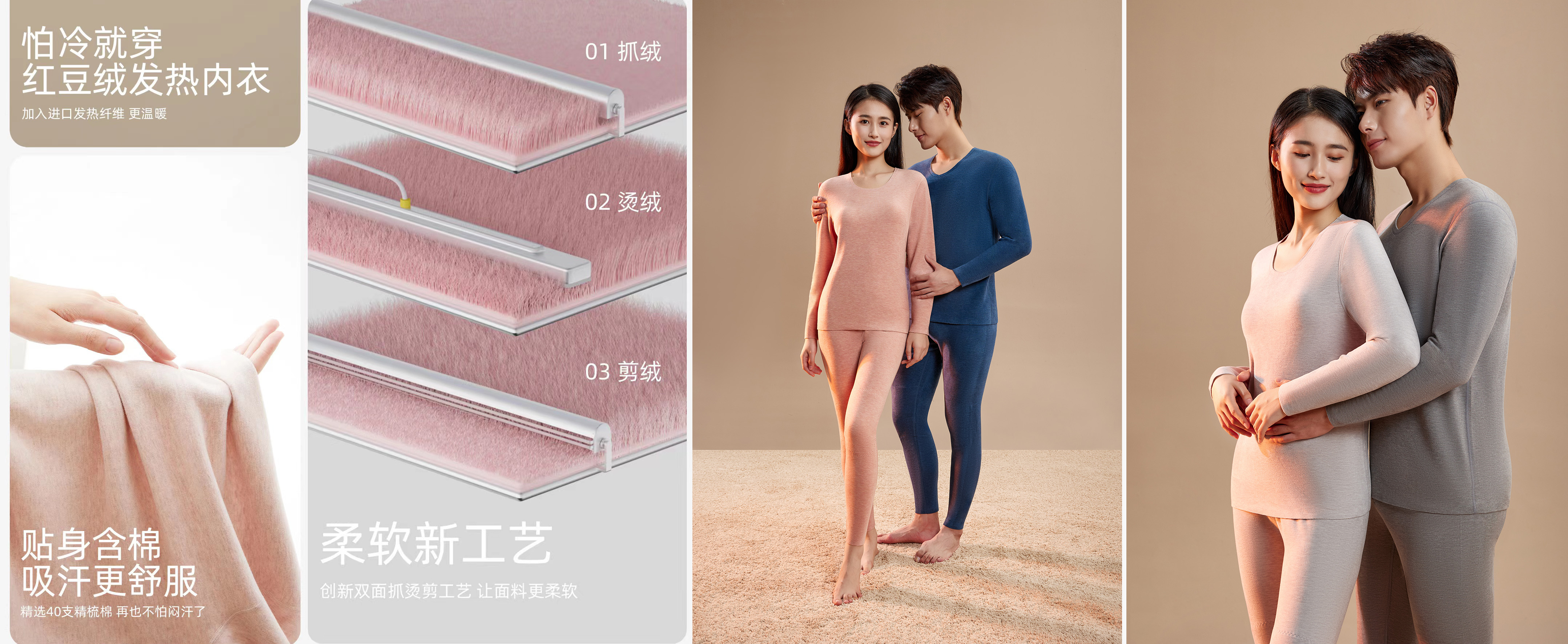 紅豆居家,舒適內衣行業標準制定者。自堅持用戶思維,推出“紅豆絨柔軟型內衣”以來,紅豆居家圍繞柔軟、舒適特性,對內衣、文胸、睡衣、內褲、襪子等各品類進行科技升級。紅豆居家與國際頂尖原材料單位合作,并利用自有的織造印染成衣產業鏈優勢,自主研發,擁有242項舒適專利。通過不斷研究內衣科學,“紅豆絨柔軟型內衣”全國熱銷超1.5億件,“嬰兒綿柔軟型文胸”成為千萬女性舒適之選,“紅豆紅內衣系列”也成為消費者節慶必購產品。