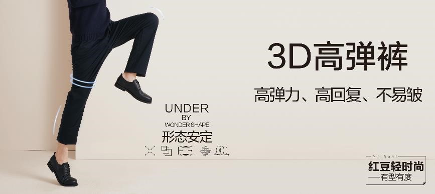 不知道該怎么選擇褲子?不知道自己適合什么版型?紅豆男裝的這款褲子可以為你解決以上問題。3D高彈褲是紅豆男裝的經(jīng)典熱賣款,高彈力無束縛的舒適穿著體驗(yàn),讓這款褲子成為紅豆男裝門店的明星產(chǎn)品。在深受歡迎的同時(shí),紅豆男裝精益求精,在第二代的基礎(chǔ)上進(jìn)行改良升級(jí),即將推出第三代3D高彈褲。高彈力、高回復(fù)、不易皺,第三代3D高彈褲經(jīng)過層層打磨、細(xì)節(jié)推敲、不斷優(yōu)化,只為打造經(jīng)典,彰顯舒適與品質(zhì)。