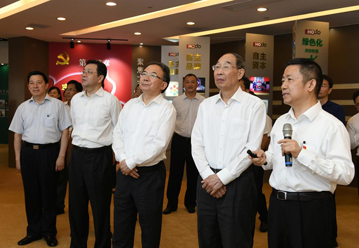 7月10日,中共中央書記處書記、中央統(tǒng)戰(zhàn)部部長尤權(quán)來錫,深入民營企業(yè)調(diào)研非公經(jīng)濟(jì)發(fā)展情況。他強(qiáng)調(diào),要堅(jiān)持以習(xí)近平新時(shí)代中國特色社會(huì)主義思想為指引,把鼓勵(lì)、支持、引導(dǎo)民營經(jīng)濟(jì)發(fā)展的政策落地落實(shí),促進(jìn)非公有制經(jīng)濟(jì)持續(xù)健康發(fā)展。省委常委、省委統(tǒng)戰(zhàn)部部長楊岳,省委常委、市委書記李小敏參加調(diào)研。當(dāng)日下午,尤權(quán)來到紅豆集團(tuán),先后參觀了紅豆黨建館、紅豆男裝智慧門店、紅豆工業(yè)城、紅豆杉盆景育苗大棚等地。在紅豆黨建館,紅豆集團(tuán)黨委書記、董事局主席兼CEO周海江向尤權(quán)介紹了紅豆創(chuàng)立現(xiàn)代企業(yè)制度+企業(yè)黨建+社會(huì)責(zé)任“三位一體”的中國特色現(xiàn)代企業(yè)制度,及企業(yè)黨建成果、企業(yè)發(fā)展等情況。