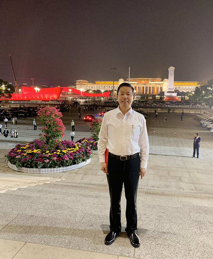 周海江介紹說,在新中國成立60周年的時候,他就作為中國鄉鎮企業的唯一代表登上了“農業成就”彩車上,巡游了天安門廣場。今年,他再次受邀出席新中國成立70周年系列活動,并登上天安門觀禮臺觀禮,這不僅是紅豆的榮耀,更是所有民營企業的榮耀,因為具有六十多年歷史的紅豆集團,正是千千萬萬民營企業發展的一個縮影。