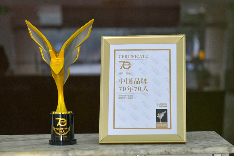 12月18日,2019(第十四屆)品牌年度人物峰會暨中國品牌70年70人頒獎盛典在京舉行。經過前期海選與專家推委會的評審,紅豆集團董事局主席兼CEO、江蘇時代楷模周海江榮膺“中國品牌70年70人”稱號。