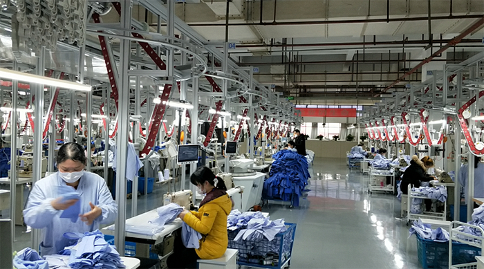 在協(xié)調(diào)好防護服生產(chǎn)的同時,徐亞東也在快速恢復(fù)他原來的本職工作。據(jù)他介紹,目前襯衫廠復(fù)工人員已經(jīng)達(dá)到230人,復(fù)工率恢復(fù)至85%,基本不會對生產(chǎn)造成影響。人員、機器就位,流水線正常運轉(zhuǎn),在徐亞東的帶領(lǐng)下,襯衫廠已經(jīng)進入全面復(fù)產(chǎn)狀態(tài),讓他感到欣慰的是,疫情沒有影響職工的工作熱情,工廠生產(chǎn)效率不降,質(zhì)量不減。