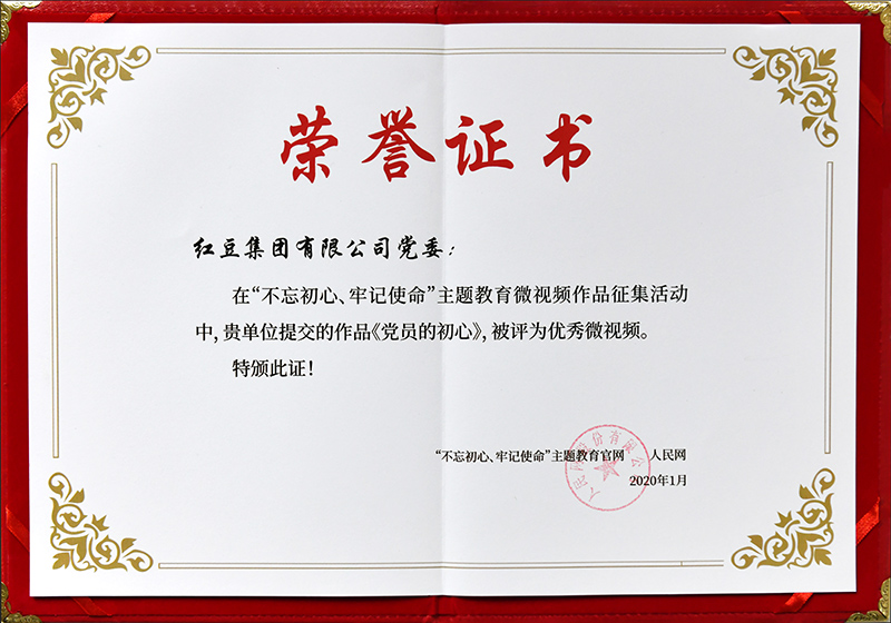 紅豆集團參評的《黨員的初心》,經過專家評選,網絡投票,從全國4000多件作品中脫穎而出,被評為50個“優秀微視頻”作品之一,紅豆集團也是全國唯一一家民營企業獲得此項殊榮。