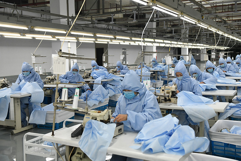 克服一系列困難后,終于在2月3日17點15分,第一件一般防護服順利下線。“我們籌備了5個小組,目前每天產量1500件左右,一周后可以達到每天7000件。”顧金龍說,現在企業火力開足,確保最大生產量,助力打贏疫情防控攻堅戰。
