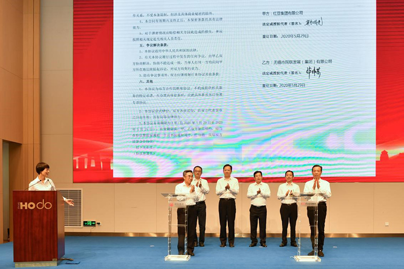 5月29日,紅豆集團有限公司與無錫市國聯發展(集團)有限公司在紅豆錫東財富廣場舉行了黨建結對共建暨戰略合作簽約儀式,共同探索新時期黨建工作新思路、新路徑、新方法,攜手為無錫爭當全省高質量發展領跑者注入更多活力。中共無錫市委常委、組織部部長馮軍,中共無錫市錫山區委書記顧中明,國聯集團黨委書記、董事局主席許可,國聯集團黨委副書記、總裁華偉榮,紅豆集團黨委書記、董事局主席兼CEO周海江,中共無錫市錫山區委常委、組織部部長竇虹等出席活動。