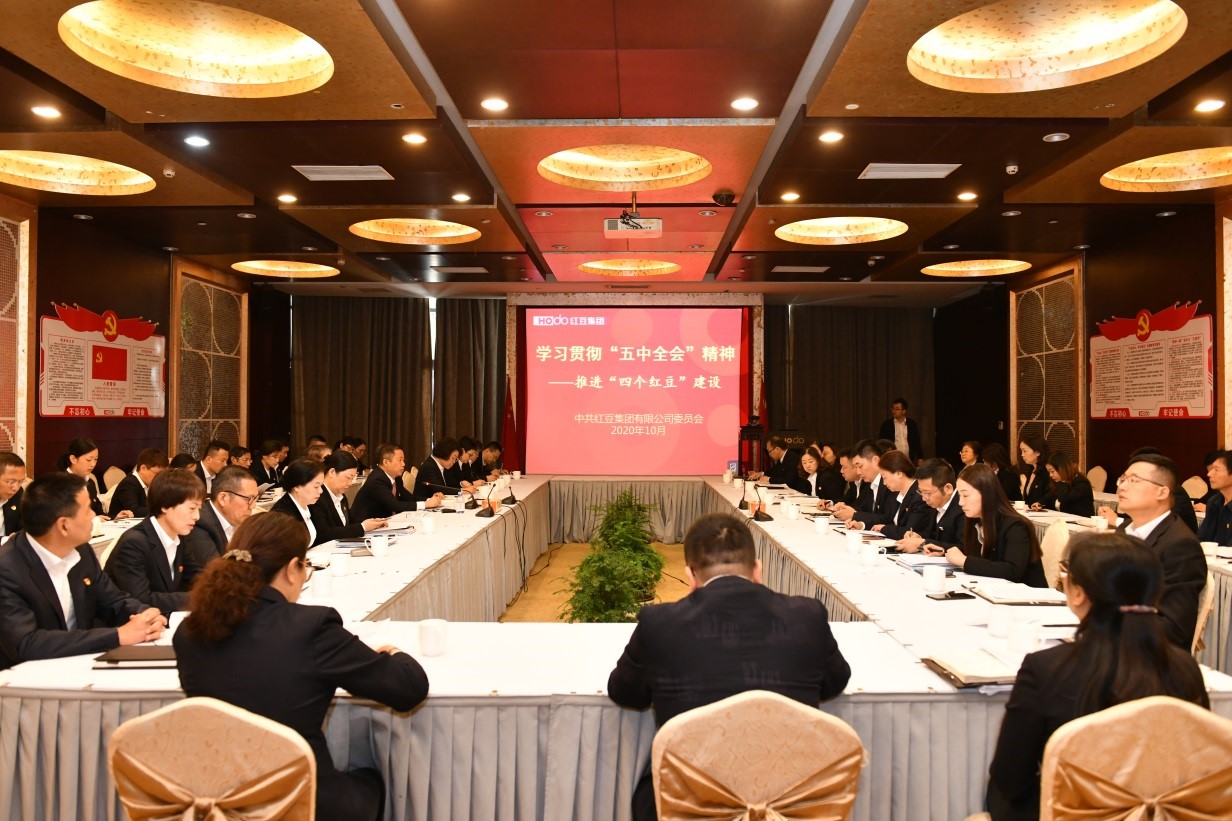 10月31日星期六上午9點(diǎn),紅豆集團(tuán)黨委在紅豆黨建館召開學(xué)習(xí)貫徹黨的十九屆五中全會精神,推進(jìn)“四個(gè)紅豆”建設(shè)專題會。紅豆集團(tuán)黨委書記、董事局主席兼CEO周海江,集團(tuán)黨委委員以及各下屬黨委(總支)書記、黨務(wù)干部等參會。