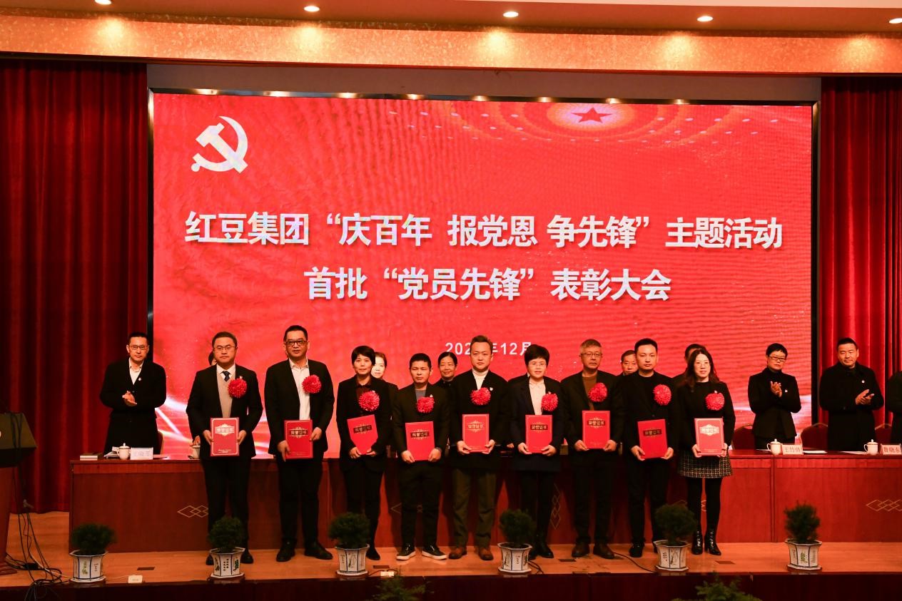 12月28日,紅豆集團對“慶百年 報黨恩 爭先鋒”主題活動首批“黨員先鋒”進行了隆重表彰,紅豆集團黨委委員、總裁周海燕宣讀集團黨委表彰決定,紅豆集團黨委書記、董事局主席周海江等為受表彰人員頒獎。表彰大會由紅豆集團黨委副書記錢靜主持。