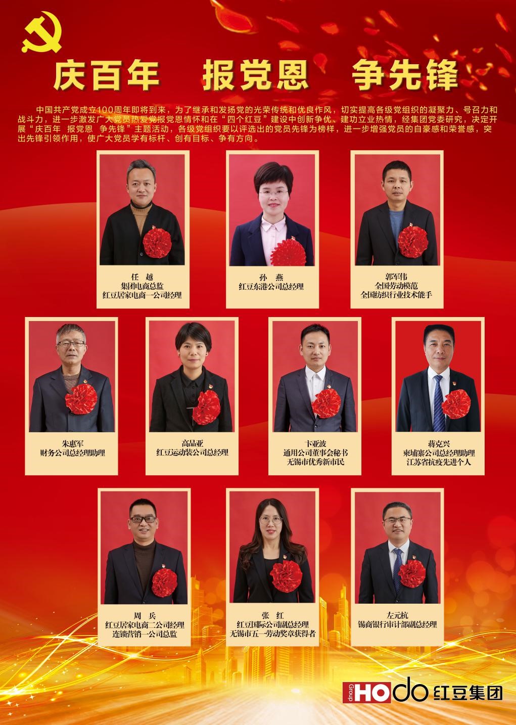 紅豆集團“慶百年 報黨恩 爭先鋒”主題活動首批“黨員先鋒”